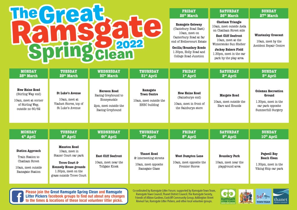 Check out the picture below to see when you can help with litter picking in this year’s Great Spring Clean.