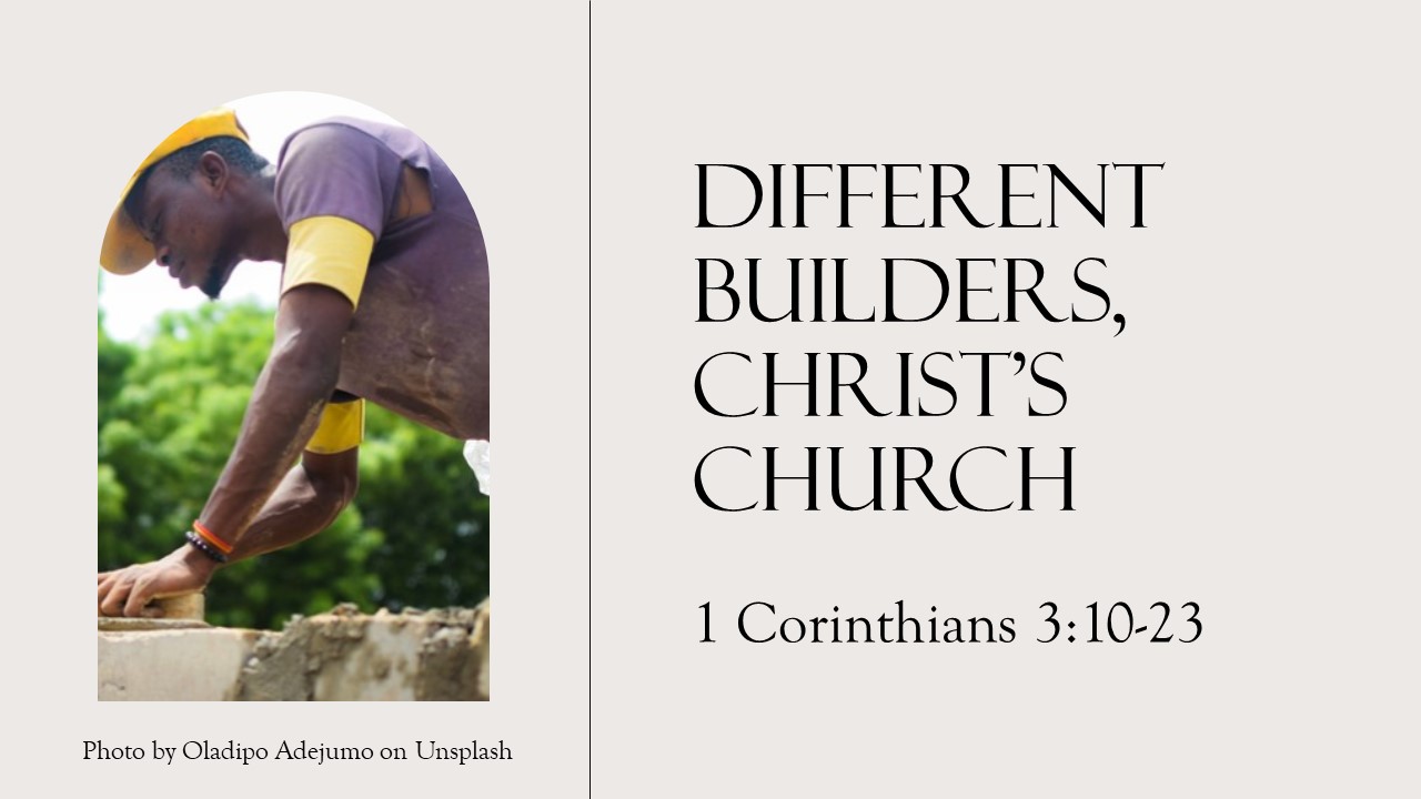 So Paul uses this picture of the church as a building to show that we are one community that needs to be rooted on one foundation of Christ crucified. But Paul also wants to talk about the builders to show that God uses many builders to build up the church.