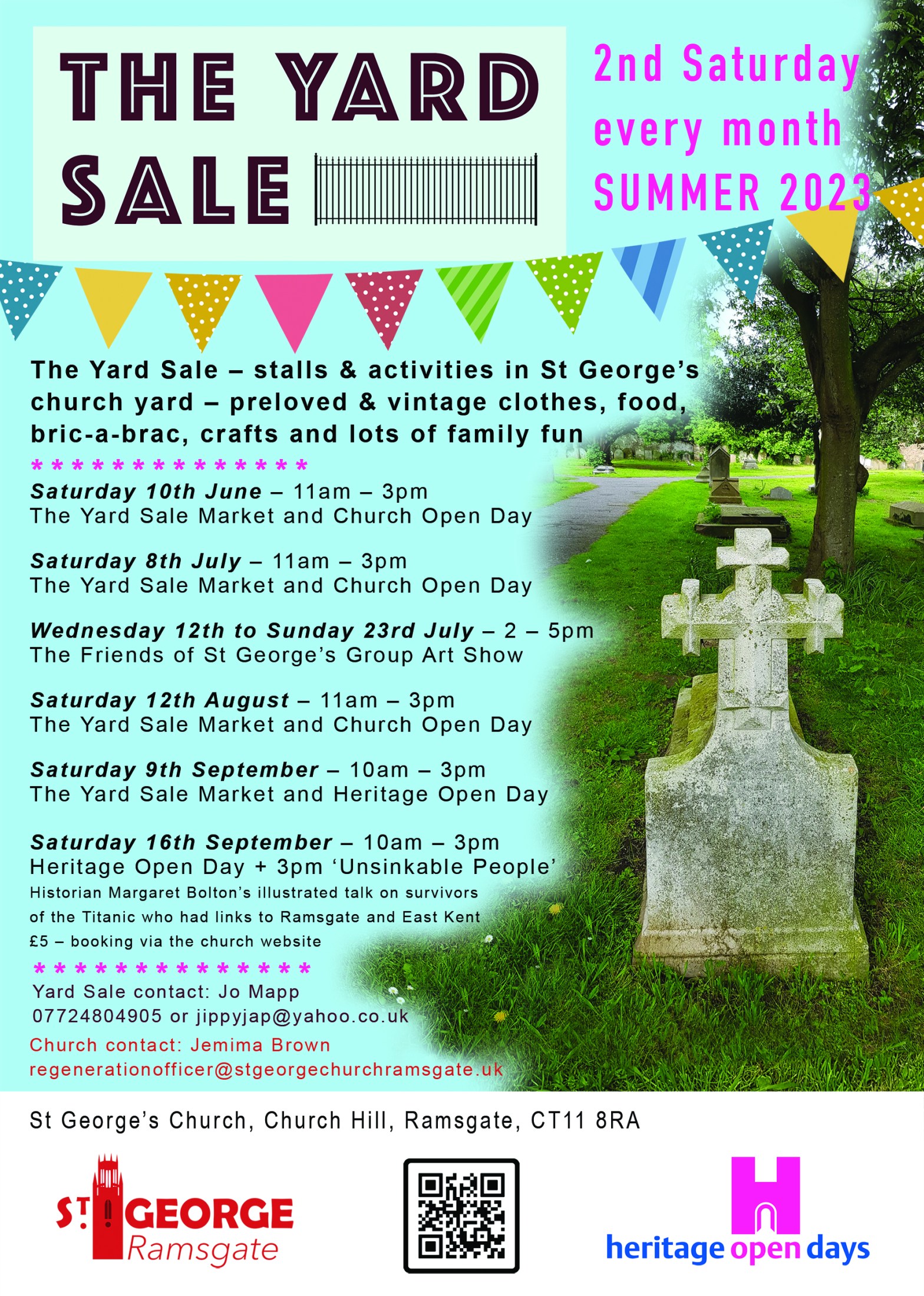 On the second Saturday of the summer months (10th June, 8th July, 12th August, 9th September) there will be a Yard Sale – stalls and activities, pre-loved and vintage clothes, food, bric-a-brac, crafts and lots of family fun.