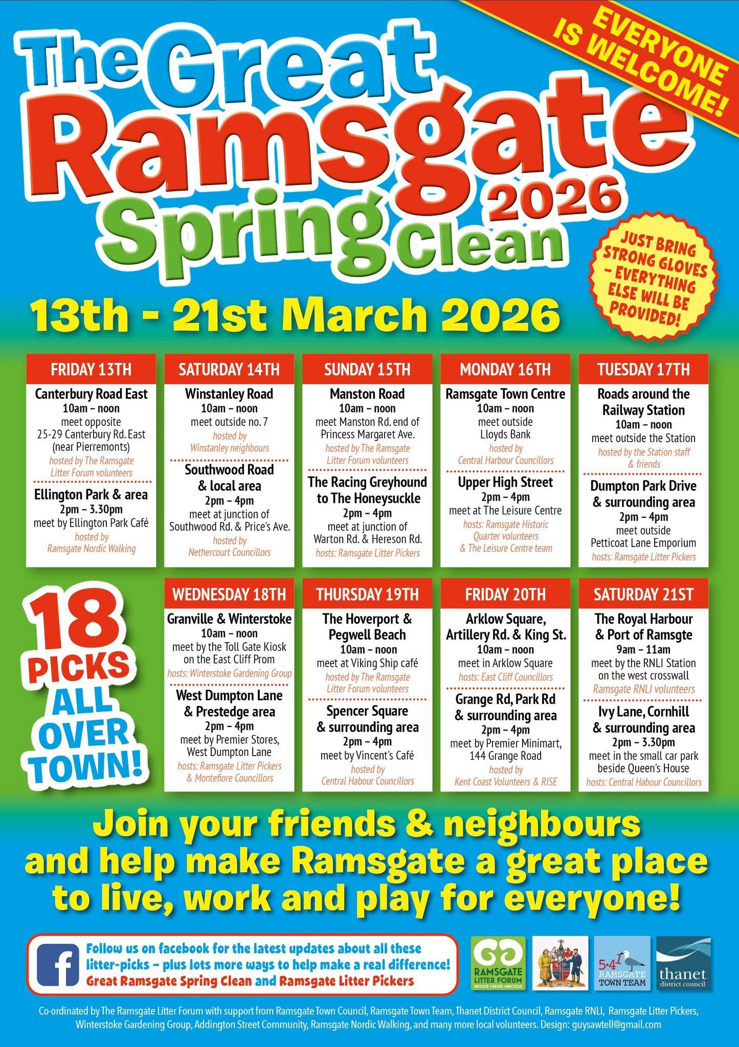 Check out the poster at the back of church or this link and join in with one of the 18 picks around Ramsgate to help clean up our town.